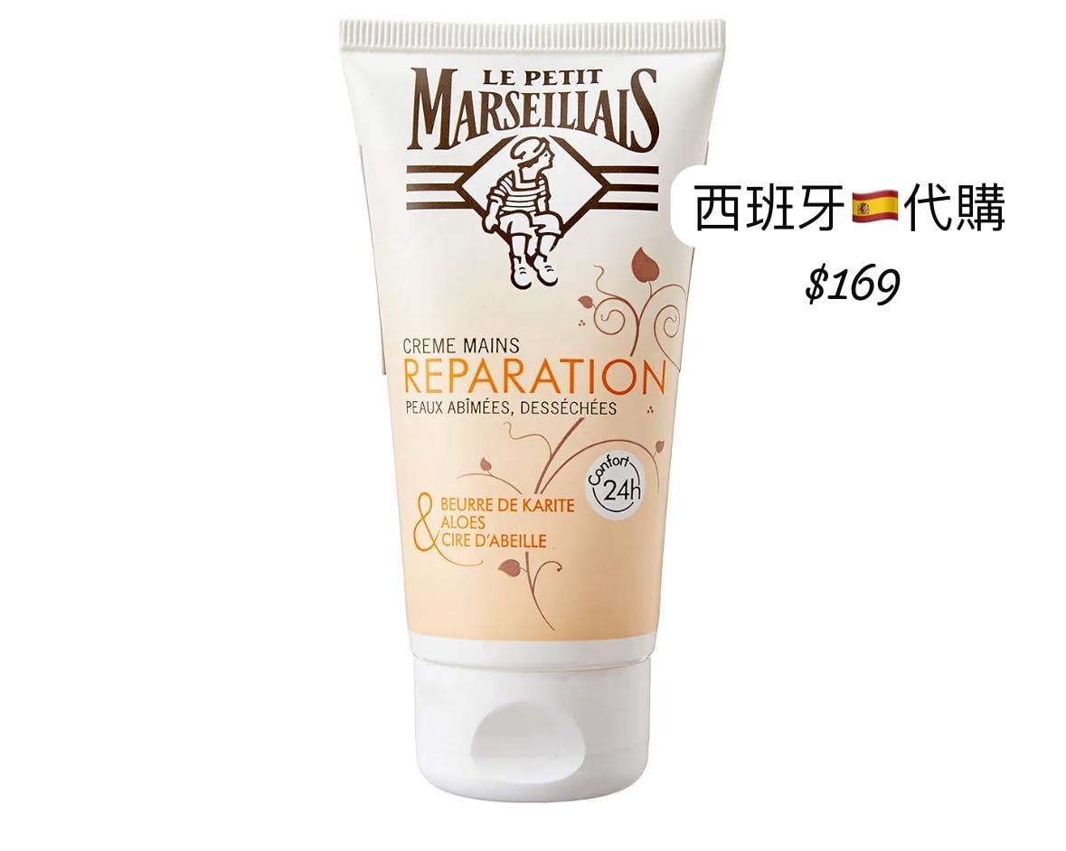 小馬牌 修護護手霜 Le Petit Marseillais – Crème Mains Réparation** 主要功效: • 深層修護受損、乾裂、粗糙的手部肌膚 • 提供 24 小時舒適保濕 • 迅速吸收、不黏膩 主要成分: • 乳油木果脂(Beurre de Karité) • 蘆薈(Aloes) • 蜂蠟(Cire d’Abeille) 適用對象: ✔雙手乾燥、龜裂、需要修護的人 容量: 75ml