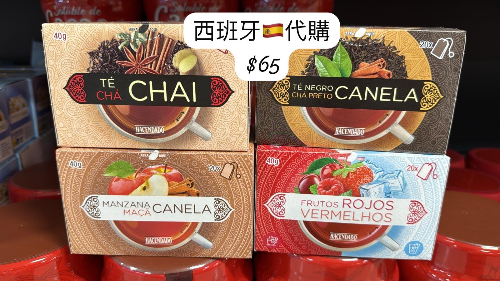 ☕ 1. TÉ CHAI(印度香料茶 / Chai Tea) • 主要功效: 溫暖身體、提神醒腦、促進循環與新陳代謝。 • 主要成分: 紅茶、肉桂、薑、豆蔻、丁香、黑胡椒與八角等天然香料。 • 口感特色: 茶香濃厚、帶有香料的辛香與溫暖氣息,風味層次豐富。 • 適合飲用時機: 早晨或寒冷天氣飲用,可加入牛奶成為「印度奶茶(Chai Latte)」。 • 包裝規格: 40g(20 袋) 💡 是喜歡香料風味與濃郁茶感者的絕佳選擇,特別適合秋冬季節享用。 ⸻ 🍂 2. TÉ NEGRO CANELA(肉桂紅茶 / Chá Preto Canela) • 主要功效: 提神、暖胃、促進血液循環。 • 主要成分: 紅茶與肉桂。 • 口感特色: 茶香中帶有濃郁的肉桂甜香,口感順滑、帶自然香氣。 • 適合飲用時機: 早晨或午後提神飲用,可熱飲或加入牛奶享用。 • 包裝規格: 30g(20 袋) 💡 肉桂紅茶不僅香氣撲鼻,還具有暖身作用,特別適合冬天或女性手腳冰冷時飲用。 ⸻ 🍎 3. MANZANA CANELA(蘋果肉桂茶 / Maçã e Canela) • 主要功效: 幫助消化、暖胃、放鬆心情。 • 主要成分: 蘋果乾、肉桂、天然果香精華。 • 口感特色: 果香與香料完美融合,帶有甜潤與微辣的溫暖風味。 • 適合飲用時機: 下午茶時段或飯後飲用,可冷泡也可熱飲。 • 包裝規格: 40g(20 袋) 💡 香氣濃郁、甜中帶微辣,是秋冬人氣最高的暖心茶款。 ⸻ 🍓 4. FRUTOS ROJOS(紅莓果茶 / Frutos Rojos Vermelhos) • 主要功效: 富含抗氧化成分,有助養顏美容與增強免疫力。 • 主要成分: 草莓、覆盆子、黑莓、藍莓等紅色莓果乾。 • 口感特色: 果香濃郁、酸甜平衡,可熱飲也適合冰飲。 • 適合飲用時機: 全天皆宜,特別適合夏季清涼享用。 • 包裝規格: 40g(20 袋) 💡 此款茶顏色鮮紅、香氣迷人,是人氣極高的花果茶選擇。