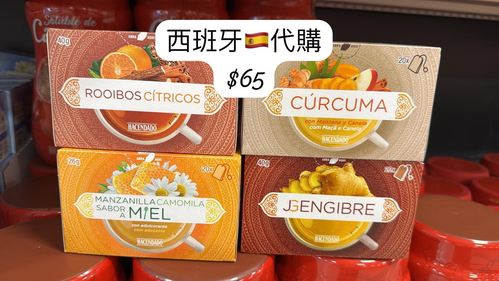 🍊 1. ROOIBOS CÍTRICOS(柑橘風味南非國寶茶) • 主要功效: 富含抗氧化成分,有助放鬆、養顏美容與促進睡眠。 • 主要成分: 南非國寶茶(Rooibos)、橙皮、檸檬皮、肉桂等。 • 口感特色: 香氣清新、帶有柑橘果香與淡淡的甜味。 • 適合飲用時機: 下午茶或晚餐後,幫助放鬆身心。 • 包裝規格: 40g(20 袋) 💡 無咖啡因、適合任何時段飲用,特別受女性與養生族群喜愛。 ⸻ 🌿 2. CÚRCUMA(薑黃茶,蘋果肉桂風味) • 主要功效: 幫助抗發炎、促進消化、強化免疫系統。 • 主要成分: 薑黃、蘋果、肉桂(Canela)。 • 口感特色: 帶有微辣與香甜果香,溫暖順口。 • 適合飲用時機: 早晨或天氣寒冷時飲用,可暖身潤喉。 • 包裝規格: 34g(20 袋) 💡 這款茶是「抗疲勞暖身茶」,特別適合換季或體質寒冷者。 ⸻ 🍯 3. MANZANILLA SABOR A MIEL(蜂蜜洋甘菊茶) • 主要功效: 幫助放鬆、助眠、舒緩喉嚨與消化不良。 • 主要成分: 洋甘菊花、天然蜂蜜香料。 • 口感特色: 柔和花香中帶蜂蜜甜味,溫潤順口。 • 適合飲用時機: 睡前或喉嚨乾癢時飲用。 • 包裝規格: 26g(20 袋) 💡 含天然甜味劑,無添加糖,是健康又溫和的晚間飲品。 ⸻ 🫚 4. JENGIBRE(薑茶 / Ginger) • 主要功效: 暖身驅寒、促進血液循環、提升免疫力。 • 主要成分: 生薑(Ginger root)。 • 口感特色: 辛香濃郁,暖胃提神。 • 適合飲用時機: 早晨或寒冷季節飲用,有助驅寒暖身。 • 包裝規格: 40g(20 袋) 💡 可搭配檸檬或蜂蜜一起飲用,風味更佳且更具保健效果。
