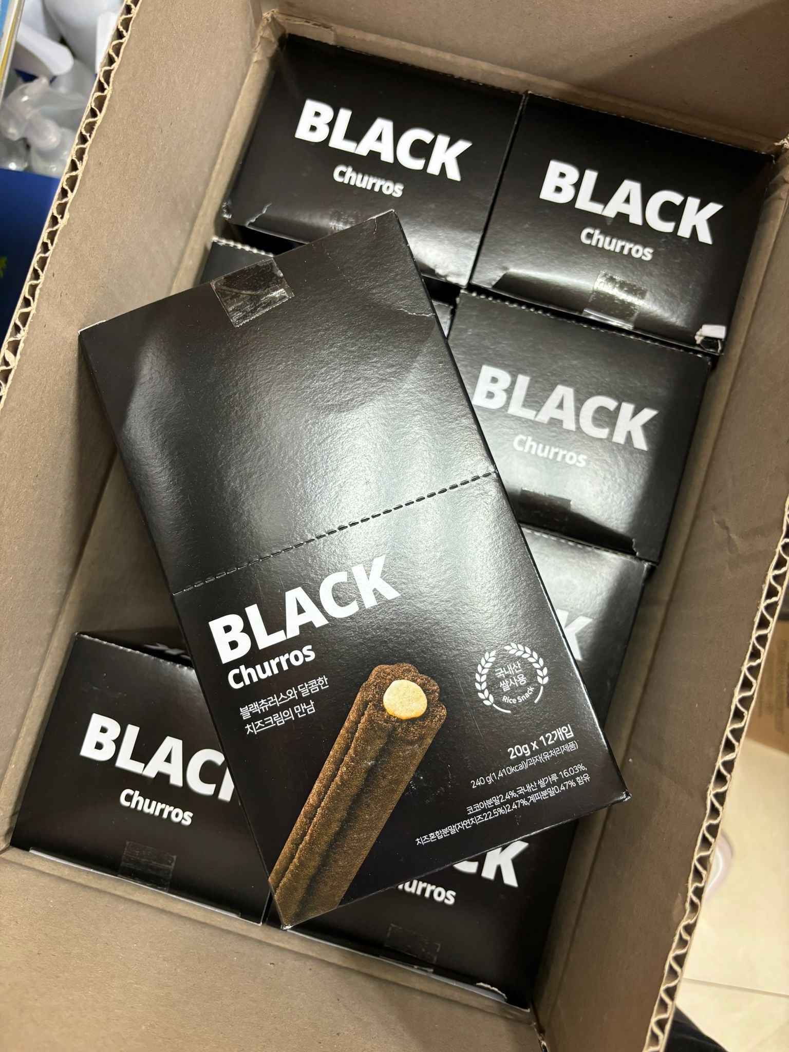 韓國Black Churros朱古力忌廉芝士夾心吉拿棒 🟡$65 1月初到貨 唔係炸,而係烤慨Churros 外層香濃朱古力味🍫 仲加咗小小桂皮更香 入面系😈邪惡慨忌廉芝士夾心🧀 每條獨立包裝,唔怕開咗會淋哂 配牛奶🥛同咖啡食一流,不經油炸,肚餓當小食、甜點啱啱好,仲健康啲添 內容:20g x 12入