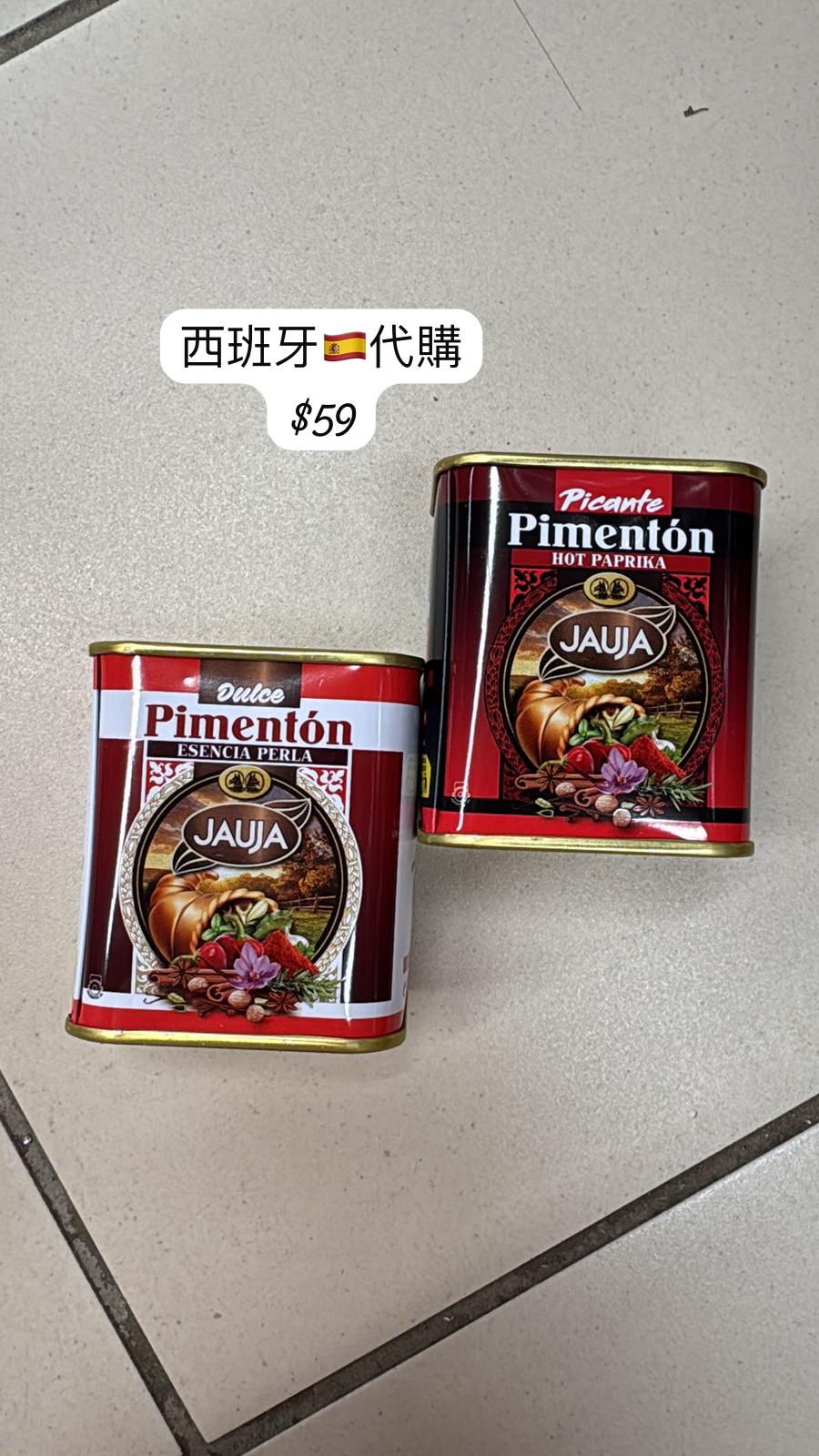 🌶️ (左)Jauja Pimentón Dulce Esencia Perla(珍珠精華甜紅椒粉) • 品牌:Jauja • 特點: • 為品牌高級款紅椒粉,色澤深紅、顆粒細緻 • 風味柔和、帶天然甜味 • 適用於高端料理與西班牙傳統菜式 • 用途:燉菜、燒烤、湯品、香腸調味等 —— 🔥 (右)Jauja Pimentón Picante(辣紅椒粉) • 品牌:Jauja • 口味:辣味(Picante / Hot Paprika) • 特點: • 香辣中帶微甜,辣度適中 • 增添菜餚層次與色澤 • 適合用於西班牙香腸、燉菜、烤肉或湯類料理 • 包裝:金屬罐裝,可防潮保存風味