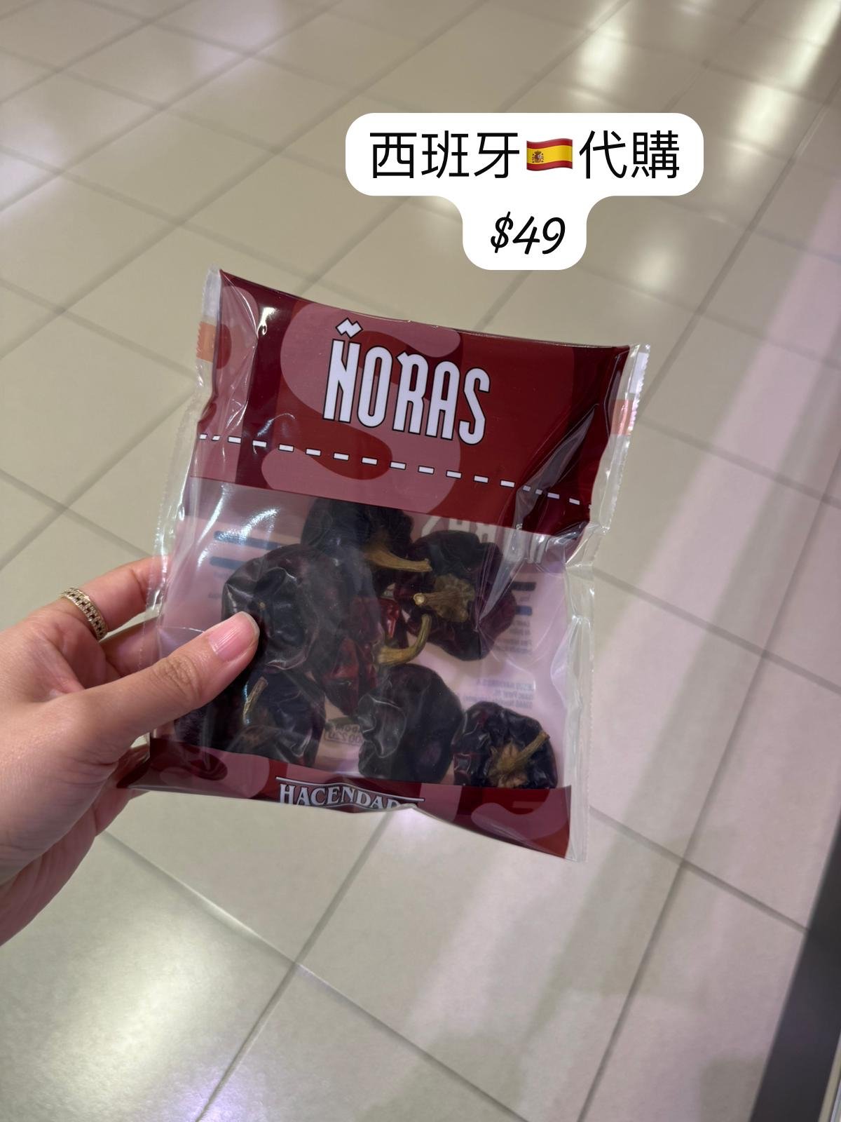 🌶️ Hacendado Ñoras(乾紅椒) 🇪🇸 西班牙傳統料理香料 — Ñora Peppers ⸻ 💎 產品介紹 Ñoras 是一種小而圓、帶甜味的紅椒(Capsicum annuum), 通常經過 自然風乾(desecadas) 後使用。 這種紅椒在西班牙料理中極為常見,特別是在 地中海沿岸地區(如穆爾西亞、瓦倫西亞與加泰隆尼亞)。 它的風味溫和、帶有淡淡的果香與煙燻香, 可為料理增添色澤、香氣與深度。 ⸻ 🌿 產品特色 • 天然曬乾紅椒(Ñoras secas),無人工添加物。 • 味道柔和,略帶甜味,無辛辣感。 • 常用於製作西班牙著名料理: • 🦐 海鮮湯(Suquet de pescado) • 🥘 Paella(西班牙燉飯) • 🍲 Salsa Romesco(羅美斯科醬) • 可研磨、搗碎或泡水取肉使用。 • 保留濃郁的紅椒色素,為料理自然上色。 ⸻ 📦 產品資訊 • 品牌: Hacendado • 品名: Ñoras • 中文名稱: 乾紅椒(紐拉辣椒) • 淨重: 約 30~40 克 • 成分: 100% 乾紅椒(Ñoras secas) • 包裝: 透明袋裝 • 產地: 西班牙 ⸻ 🍽️ 使用建議 1. 泡軟取肉法(傳統用法) • 將 Ñoras 放入熱水中浸泡約 20–30 分鐘。 • 待果皮變軟後,用刀刮出內部果肉,即可用於醬料或湯底。 2. 料理用途 • Romesco 醬(Cataluña 加泰隆尼亞經典醬): 搭配烤蔬菜、魚類或麵包食用。 • Paella 或海鮮湯底: 添加 Ñora 果肉可增添濃郁的紅潤色澤與甜香味。 • 燉菜與醃料: 可與蒜頭、橄欖油、番茄一同炒香提味。