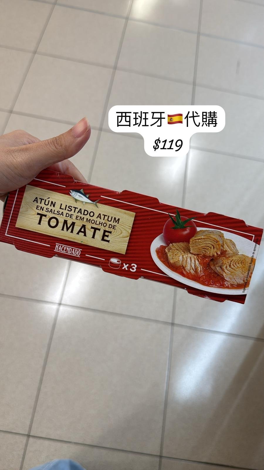 🍅 Atún Listado en Salsa de Tomate(番茄醬燉鮪魚罐頭) 中文名稱: 番茄醬燉鮪魚罐頭 🍴 產品特色 • 使用 條紋鮪魚(Atún Listado / Skipjack Tuna),肉質較輕盈細嫩。 • 搭配新鮮番茄醬汁燉煮,酸甜開胃、香氣十足。 • 風味道地的西班牙家常菜式,可直接食用或搭配飯麵。 • 無人工防腐劑,採 Abre Fácil(易開罐)設計,隨時開啟即享。 📦 產品資訊 • 品牌: Hacendado • 主要成分: 鮪魚、番茄醬(番茄、橄欖油、鹽) • 特色: 酸甜可口,開胃健康 • 包裝規格: 3 罐 × 80g • 保存方式: 常溫保存,開封後冷藏