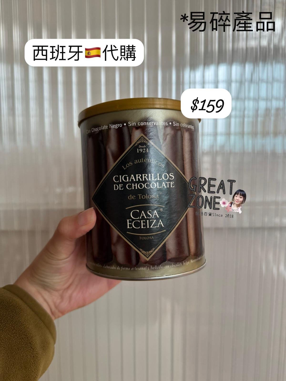 🍫 Casa Eceiza Cigarrillos de Chocolate de Tolosa 托洛薩巧克力雪茄餅 🇪🇸 西班牙百年甜點工藝 × 經典濃郁可可香 來自西班牙巴斯克地區托洛薩(Tolosa)的百年甜點品牌 Casa Eceiza,自 1924 年創立以來,以傳統手工烘焙與天然原料聞名。這款 Cigarrillos de Chocolate de Tolosa 是品牌的經典代表作之一 —— 將細緻酥脆的奶油雪茄餅淋上香濃黑巧克力,完美結合香氣與口感。 ⸻ ✨ 產品特色 • 🍫 濃郁黑巧克力外層:每支雪茄餅都均勻裹上高品質黑巧克力,苦甜平衡、香氣迷人。 • 🧈 純手工製作:延續 Casa Eceiza 百年傳統,每支餅乾均由職人手工捲製。 • 🌿 天然配方:無防腐劑、無人工色素(Sin conservantes, sin colorantes)。 • ☕ 絕妙搭配:適合與咖啡、濃茶、紅酒或雪莉酒一同享用。 ⸻ 🍪 口感描述 外層薄脆、內裡輕盈酥香,入口時黑巧克力的濃郁風味與奶油餅的柔滑香氣相互融合,帶來層次豐富的甜點享受。 ⸻ 📦 產品資訊 • 品牌:Casa Eceiza(卡薩・艾塞伊薩) • 名稱:Cigarrillos de Chocolate de Tolosa(托洛薩巧克力雪茄餅) • 產地:西班牙 Tolosa • 主要成分:奶油、糖、蛋白、小麥粉、黑巧克力(可可固形物含量高)