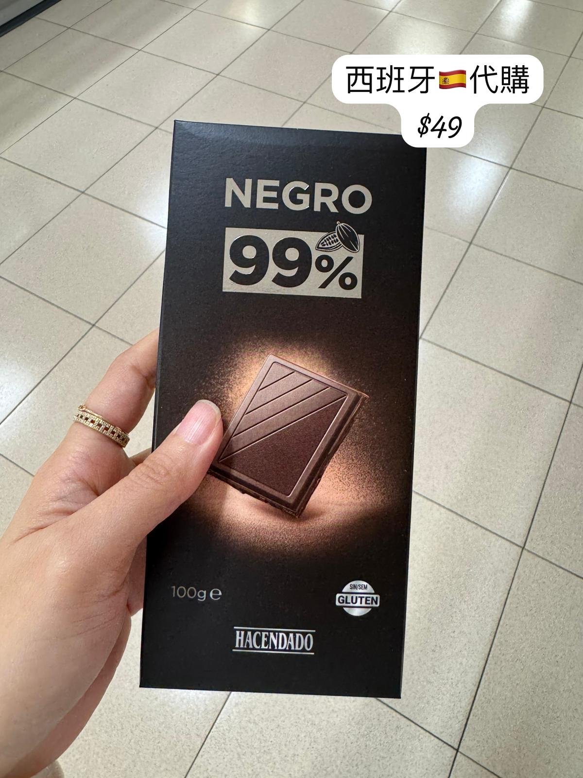 🍫 Hacendado Negro 99% Cacao 🖤 極致純可可 × 無糖低碳的濃烈享受 這款 99% 黑巧幾乎完全由可可組成, 甜味極低,主調是濃郁可可香氣、微酸果香與天然苦韻。 它的口感厚重、收尾乾淨,帶有可可豆天然的木質與烘焙香氣。 非常適合黑巧控、低糖飲食者,或想細細品味可可原味的人。 ⸻ ✨ 產品特色 • 🍫 超高可可含量(99%):極純黑巧克力,無額外糖分干擾。 • 🚫 無麩質(Sin Gluten):適合麩質不耐或追求純淨配方者。 • 💪 低糖 / 低碳水:僅含極少天然糖分,適合低碳或生酮飲食。 • 🌿 天然原味:展現可可豆最真實的風味層次。 • ⚖️ 100g 包裝:經典尺寸,方便每日分段品嚐。 • 🎨 深黑金屬風包裝:視覺上象徵「強烈 × 高級 × 純粹」。 ⸻ 📋 產品資訊 • 品牌:Hacendado(Mercadona) • 名稱:Chocolate Negro 99% Cacao • 重量:100g • 主要成分:可可塊、可可脂、可可粉、少量乳化劑(大豆卵磷脂)、香草香料。 • 糖分含量:極低(源自可可豆天然糖分)。 • 保存方式:避免陽光直射與高溫;理想儲存溫度為 15–18°C。 ⸻ ☕ 品嚐建議 • 與濃縮咖啡或紅茶搭配 ☕:強化苦味層次與香氣。 • 配紅酒或威士忌 🍷:與果香酒體相得益彰,提升尾韻層次。 • 刨屑用於甜點 🍰:適合灑在慕斯、優格或燕麥上,增添深邃風味。