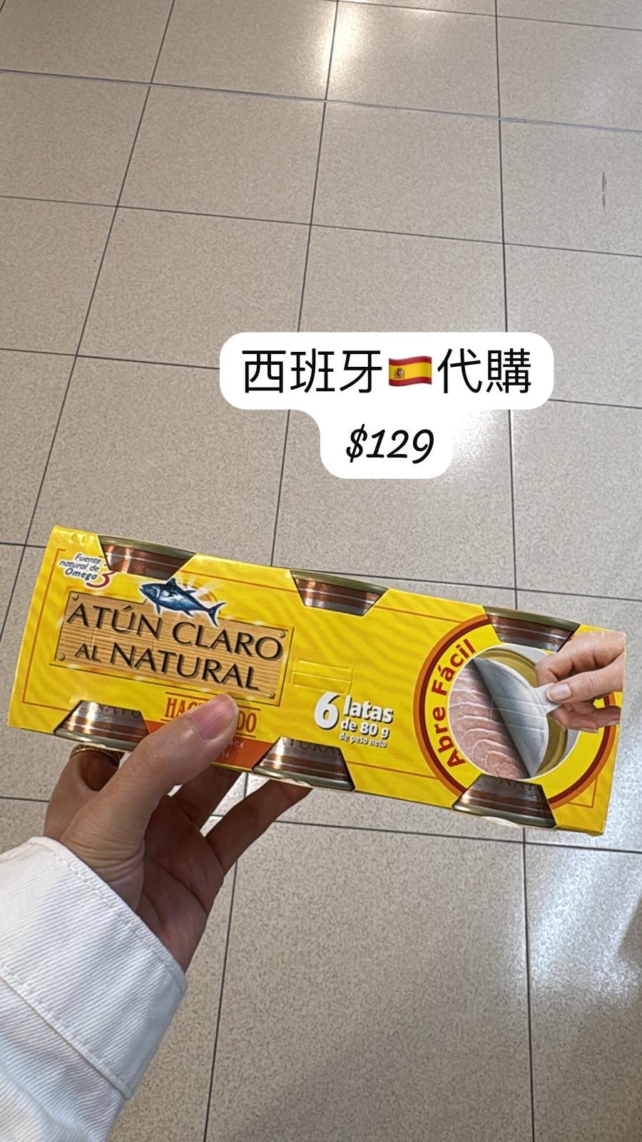 🐟 Hacendado Atún Claro al Natural(天然淡色鮪魚罐頭) 🇪🇸 清爽無油 · 原味高蛋白 這款 Atún Claro al Natural 採用來自東大西洋的 淡色鮪魚(Yellowfin Tuna), 以天然鹽水封存,不含油脂與人工添加物, 完美保留鮪魚的自然風味與營養價值。 ⸻ 🍴 產品特色 • 天然保存(Al Natural): 僅以水與鹽封存,無油無防腐劑,健康清爽無負擔。 • 高蛋白低脂肪: 含豐富的 Omega-3、維生素B群與礦物質, 是健身、減脂與健康飲食的理想選擇。 • 便捷設計: 六罐裝(每罐80g),「Abre Fácil」易開蓋設計,隨時享用方便快捷。 • 多用途料理: 可用於沙拉、三明治、義大利麵、飯糰、燉飯或直接冷食。 ⸻ 📦 產品資訊 • 品牌: Hacendado(Mercadona 自有品牌) • 名稱: Atún Claro al Natural • 中文名稱: 天然淡色鮪魚罐頭 • 規格: 6罐 × 80g • 主要成分: 鮪魚(Atún Claro)、水、鹽 • 營養特點: 富含Omega-3,低脂肪、高蛋白 • 保存方式: 常溫保存,開封後冷藏並儘快食用 • 產地: 西班牙