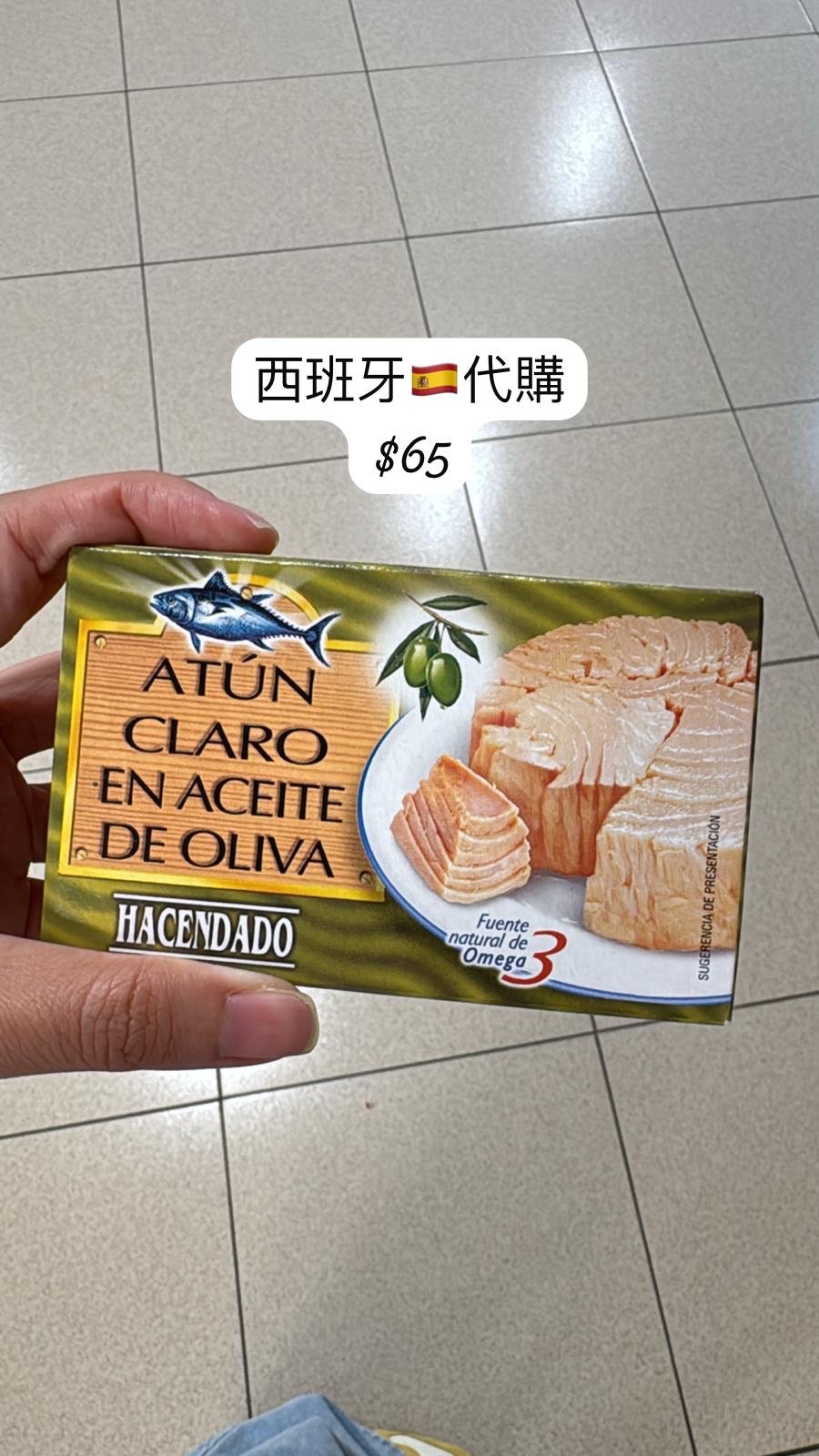 🐟 Hacendado Atún Claro en Aceite de Oliva(橄欖油浸淡色鮪魚罐頭) 🇪🇸 西班牙地中海風味 · 天然Omega-3來源 這款產品以 淡色鮪魚(Atún Claro / Yellowfin Tuna) 為主原料, 搭配高品質的 橄欖油(Aceite de Oliva) 封存, 是西班牙家庭最常見的罐頭之一,兼具營養、美味與便利。 ⸻ 🌿 產品特色 • 天然原料: 嚴選來自東大西洋的新鮮淡色鮪魚。 • 優質橄欖油封存: 保持鮪魚鮮嫩口感並提升風味層次。 • 富含Omega-3: 有助維持心血管健康與營養均衡。 • 無人工防腐劑、無添加劑。 • 方便開封(Abre Fácil)設計,開罐即食,方便又美味。 ⸻ 📦 產品資訊 • 品牌: Hacendado(Mercadona 自有品牌) • 名稱: Atún Claro en Aceite de Oliva • 中文名稱: 橄欖油浸淡色鮪魚罐頭 • 主要成分: 淡色鮪魚(Yellowfin Tuna)、橄欖油、鹽 • 營養特點: • 高蛋白 • 富含Omega-3脂肪酸 • 含天然維生素B群與礦物質 • 產地: 西班牙 • 保存方式: 常溫保存,開封後需冷藏並儘快食用 ⸻ 🍴 食用建議 • 地中海風味沙拉: 加入鮪魚、橄欖、蕃茄、洋蔥、蛋與生菜。 • 義大利麵: 混合蒜香橄欖油與鮪魚肉,簡單又美味。 • 三明治 / 飯糰: 作為高蛋白內餡,營養又飽足。 • Tapas 開胃菜: 可搭配餅乾或法式麵包食用。