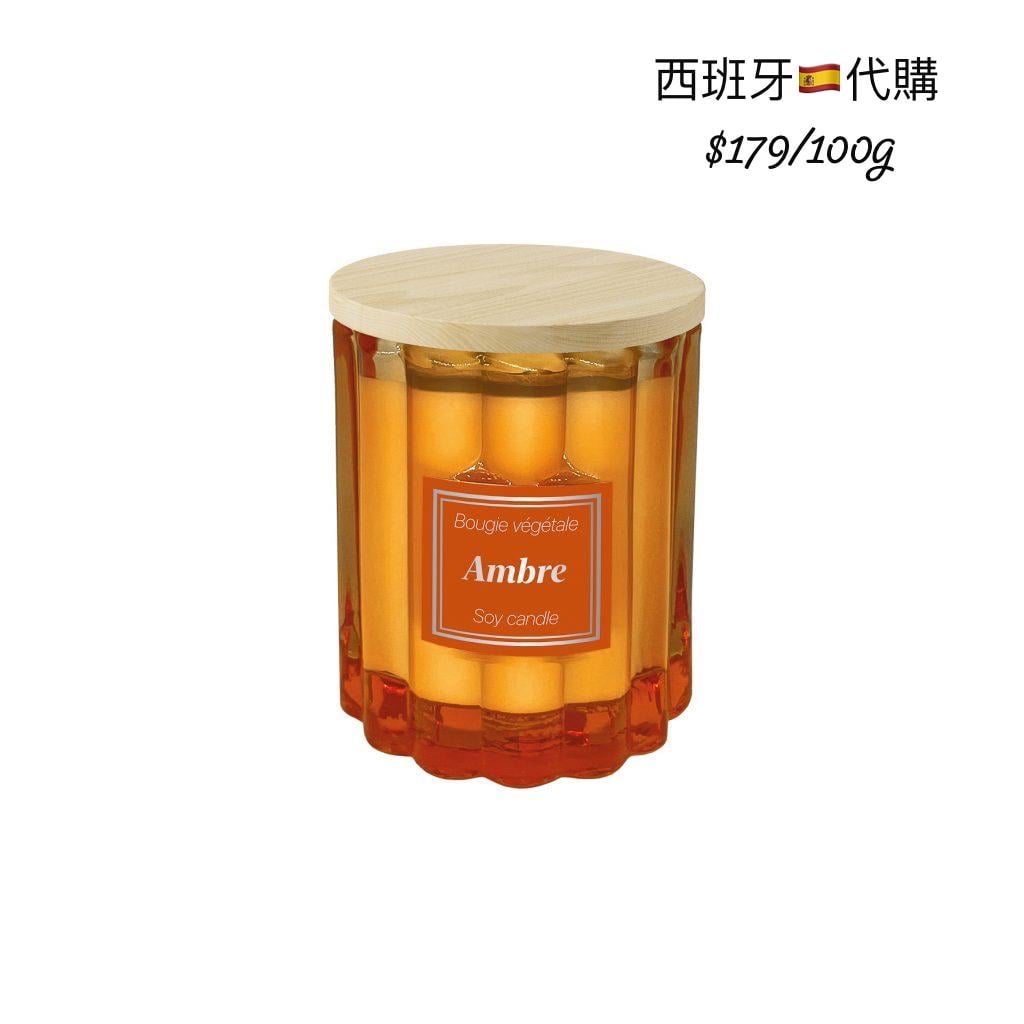 香氛大豆蠟燭(Bougie végétale Soy Candle) 外型為彩色玻璃瓶+木蓋設計,容量通常為大豆蠟香氛蠟燭,屬典雅法式風格。 🧡 Ambre – 琥珀 香味類型:溫暖、東方木質調 • 帶有溫熱感的琥珀香氣 • 帶點甜感與神秘風情 • 適合秋冬使用,營造高級感與舒適氣氛