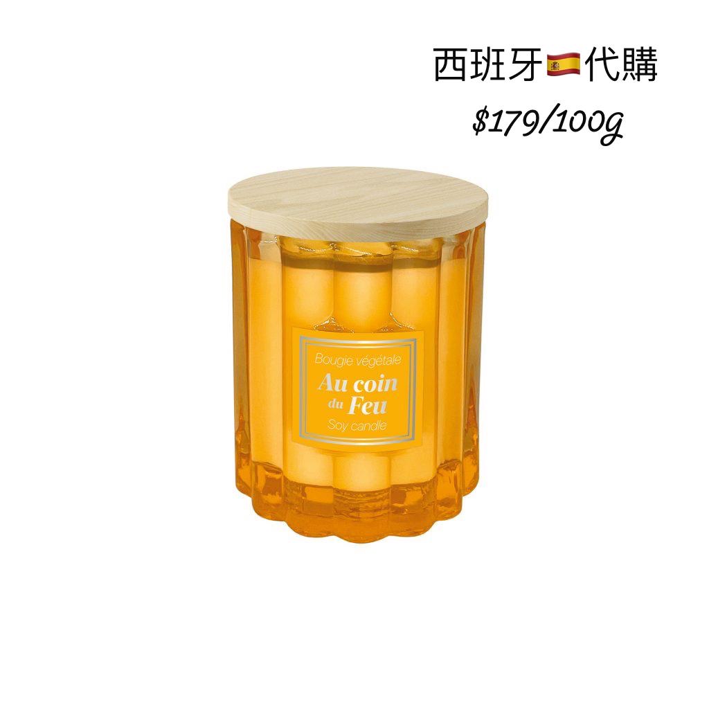香氛大豆蠟燭(Bougie végétale Soy Candle) 外型為彩色玻璃瓶+木蓋設計,容量通常為大豆蠟香氛蠟燭,屬典雅法式風格。 🟧 Au coin du Feu(壁爐暖香 / 炉邊時光) 香味特色: 木質暖調,帶煙燻、琥珀與香料感,有冬季壁爐般的溫暖氛圍。 中文介紹: 仿佛坐在壁爐旁,被溫暖木香包圍,營造舒適、安定且安心的居家氣息。
