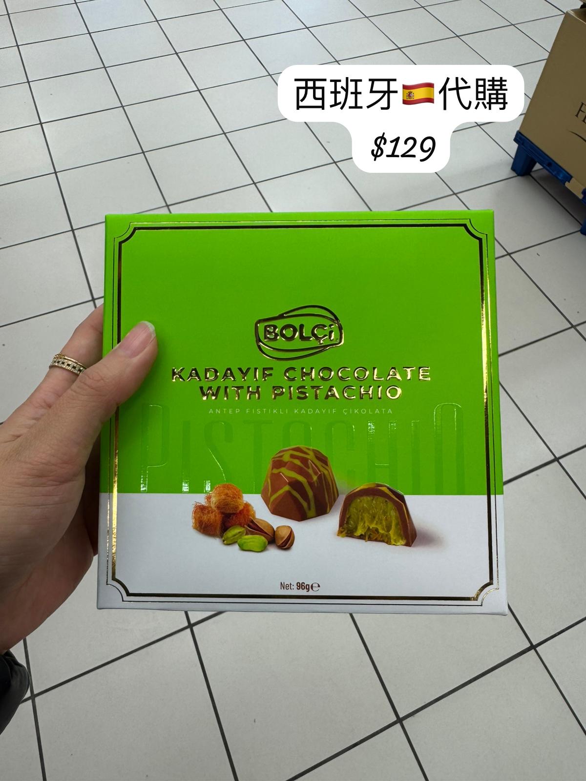 Bolçi Kadayıf Chocolate with Pistachio(土耳其開心果巧克力 + 卡代夫) 📌 特點 • 外層巧克力,內部含有開心果與 Kadayıf(土耳其細麵線酥)。 • 口感酥脆 + 巧克力香濃。 • 是土耳其特色甜點風格。 📌 適合:喜歡異國風味甜點的人。