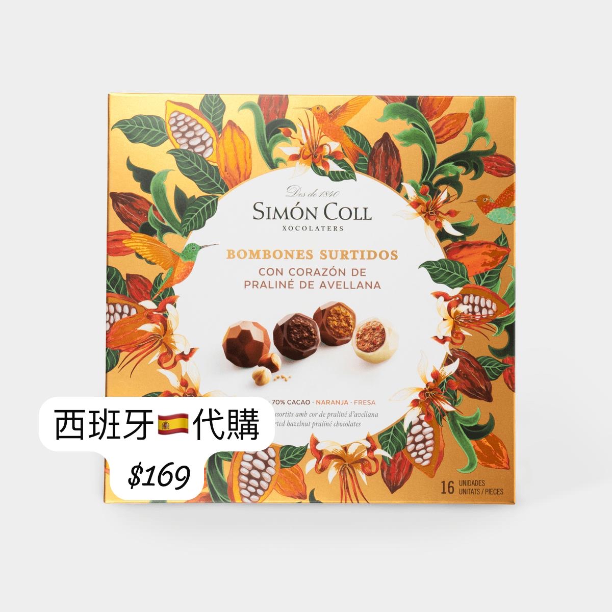 🟠 🍬 Bombones Surtidos 綜合榛果心巧克力禮盒 這款精美禮盒內含 16 顆多口味榛果心夾心巧克力,包括: • 牛奶巧克力 • 70% 黑巧克力 • 橙皮風味 • 草莓風味 每顆都有滑順的 榛果夾心(praliné de avellana),外層包裹不同可可濃度的巧克力,是節慶送禮的高雅選擇。