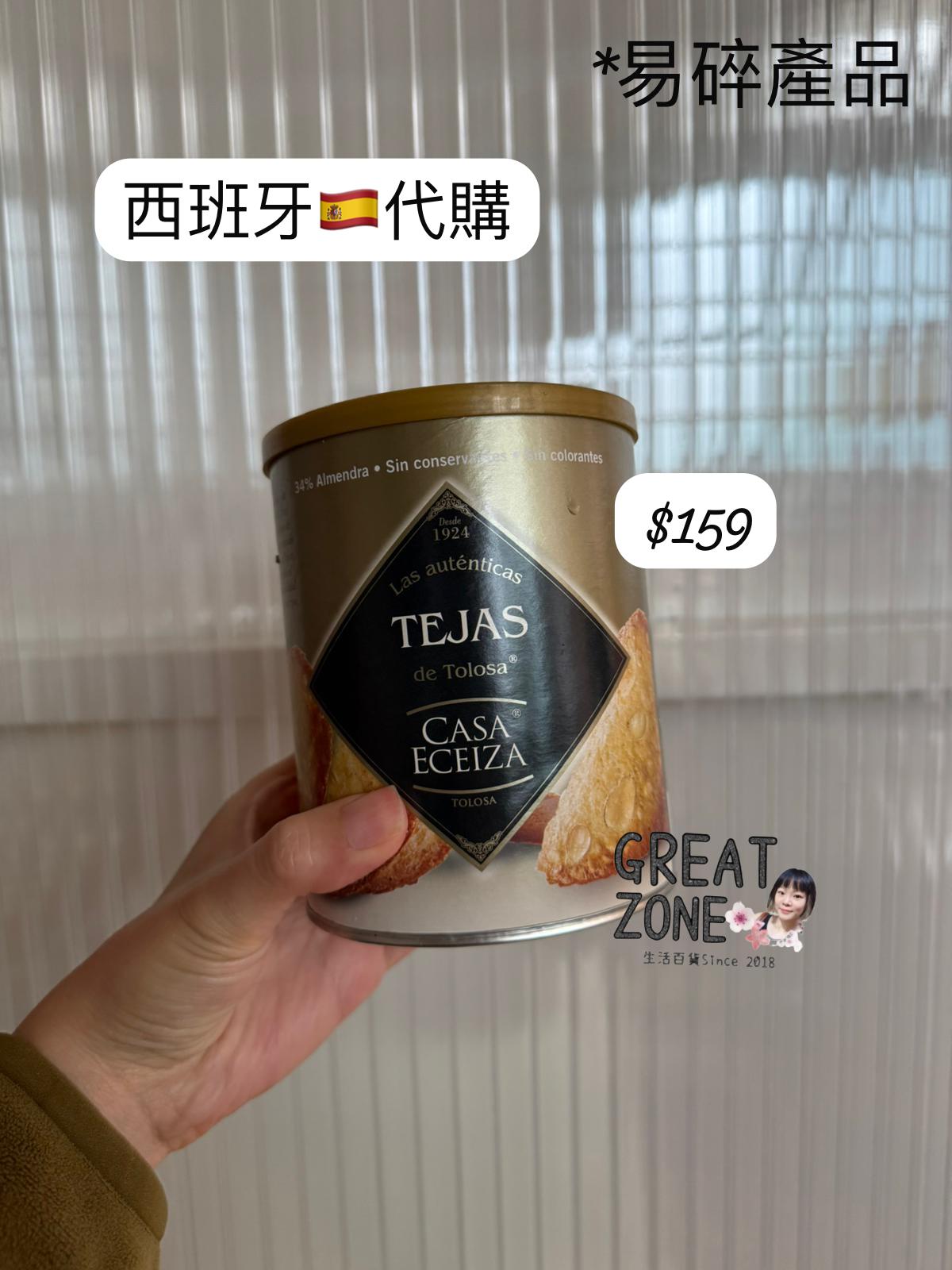 🇪🇸 Casa Eceiza Tejas de Tolosa 托洛薩杏仁瓦片餅 🥮 西班牙經典甜點・百年家族傳承工藝 來自西班牙巴斯克地區托洛薩(Tolosa)的百年甜點品牌 Casa Eceiza,自 1924 年創立以來,始終秉持傳統配方與天然食材製作甜點。Tejas de Tolosa 是其最具代表性的產品之一,以高比例杏仁製成的香脆瓦片餅,完美呈現西班牙經典烘焙的純粹風味。 ⸻ ✨ 產品特色 • 34% 高含量杏仁:選用優質杏仁片,香氣濃郁、口感紮實。 • 純手工製作:每片瓦片皆由職人親手塑形與烘烤,外觀自然微彎如屋瓦。 • 天然配方:無防腐劑、無人工色素(Sin conservantes, sin colorantes)。 • 口感特色:外層金黃酥脆、杏仁香氣豐富,入口即化、甜度柔和不膩。 ⸻ ☕ 享用建議 • 適合搭配 咖啡、茶或雪莉酒 一起享用。 • 可作為 下午茶點心、冰淇淋或奶酪的裝飾餅乾。 • 作為 節慶禮盒或伴手禮,外觀高雅大方。