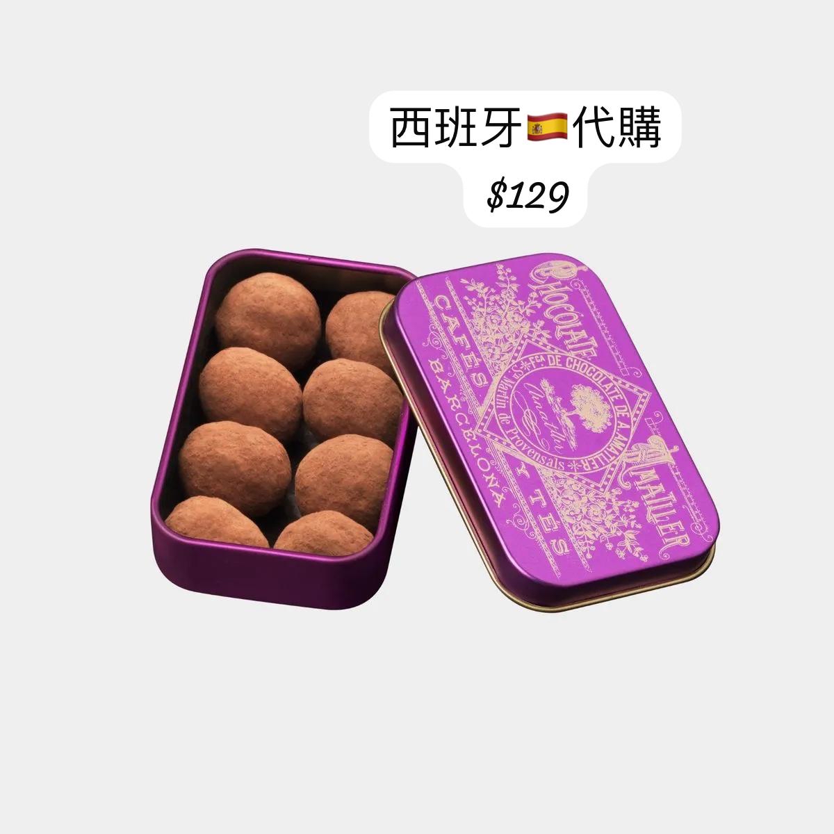🍫 紫羅蘭鐵盒 — 可可粉松露巧克力 Chocolate Amatller – Cacao Dusted Truffles (Trufas de Cacao) ⸻ 🇪🇸 品牌介紹 Amatller 創立於 1797 年,是西班牙最古老的巧克力品牌之一,結合傳統手工工藝與歐式藝術美學,包裝設計以巴塞隆納新藝術風格(Modernisme)為靈感,極具收藏價值。 ⸻ ✨ 產品特色 • 經典松露造型:圓潤可愛的球形巧克力,每一顆都裹上細緻天然可可粉。 • 口感層次:外層微苦可可粉、內餡香滑濃郁,入口即化,香氣持久。 • 風味特點: • 使用高品質西班牙與中南美洲產可可豆。 • 味道濃郁但不甜膩,呈現純正歐洲松露巧克力風格。 • 無人工香料與色素添加。 ⸻ 🎁 包裝特色 • 採用 金字壓印的紫羅蘭復古鐵盒,設計靈感源自 19 世紀 Amatller 歷史包裝。 • 小巧精緻,攜帶方便,亦適合收藏或重複使用。 ⸻ 📦 規格說明 • 淨重:60 克 • 成分:可可膏、糖、可可粉、乳脂、香草精等 • 可可含量:約 50% • 原產地:西班牙(Barcelona) • 保存方式:請存放於陰涼乾燥處,避免陽光直射或高溫