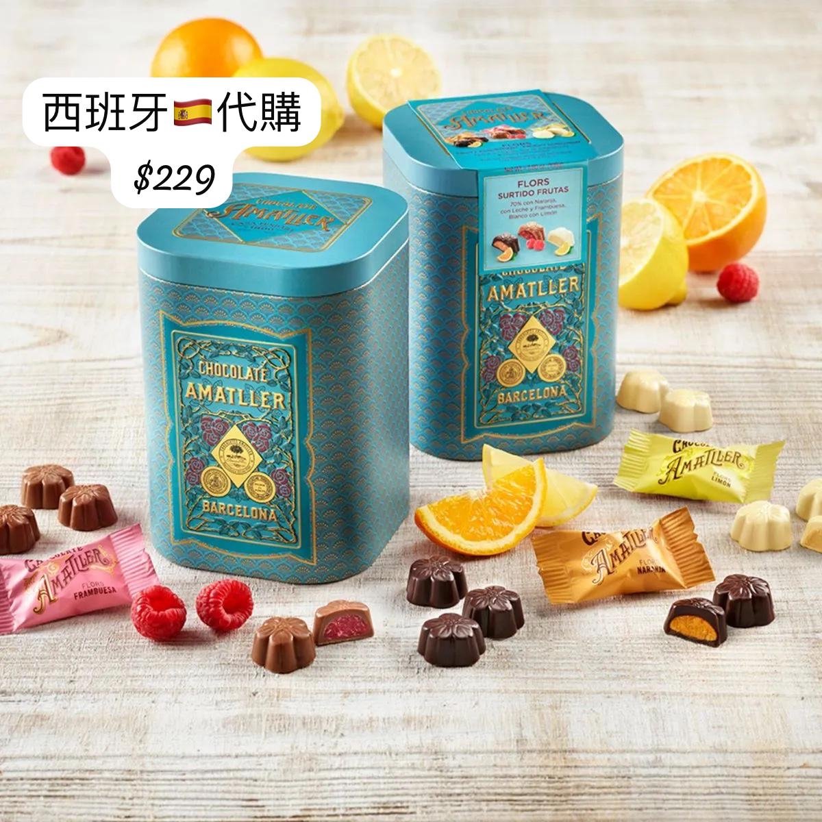 🍫 Chocolate Amatller – Flors Surtido Frutas 綜合水果花形巧克力禮盒 🇪🇸 品牌介紹 Chocolate Amatller 創立於 1797 年,是西班牙歷史最悠久的巧克力品牌之一。品牌以「藝術 × 巧克力」為理念,結合巴塞隆納的新藝術風格(Modernisme)與精緻的手工製作工藝,打造出兼具味覺與美感的經典巧克力。 ⸻ 🍊 產品特色 這款 綜合水果花形巧克力禮盒 是 Amatller 最受歡迎的系列之一,融合多種經典果味與不同巧克力基底,外層採用復古華麗的 藍金色鐵罐包裝,既典雅又具收藏價值。 內含多款以花朵造型製成的夾心巧克力,每一顆都獨立包裝,方便分享與保存。 ⸻ 🍓 綜合口味內容 1. Flors Frambuesa 覆盆子夾心牛奶巧克力 • 香濃牛奶巧克力外層,包裹酸甜覆盆子果泥內餡,果香濃郁、甜中帶酸。 2. Flors Naranja 橙香黑巧克力 • 70% 黑巧克力外層,搭配橙皮果醬內餡,柑橘清香襯托可可微苦風味。 3. Flors Citrus 檸香白巧克力 • 白巧克力搭配檸檬汁奶油內餡,酸甜清爽,入口即化。 ⸻ ✨ 品味特色 • 造型精緻:花朵造型巧克力象徵幸福與優雅。 • 口感層次豐富:外層香滑巧克力,內餡果香濃郁,甜度適中。 • 視覺與味覺兼備:復古鐵罐搭配金色浮雕字體,極具歐式典藏風格。 ⸻ 📦 產品資訊 • 內容量: 約 180 克 • 包裝: 精緻鐵罐(附密封蓋) • 口味組合: 橙香黑巧、檸香白巧、覆盆子牛奶巧克力 • 原產地: 西班牙(Barcelona) • 保存方式: 存放於陰涼乾燥處,避免陽光直射或高溫環境。