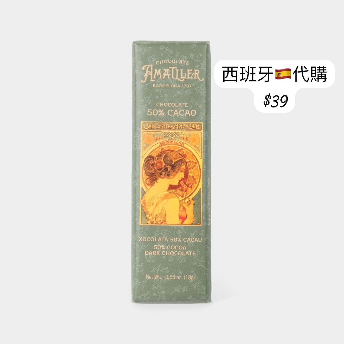 🍫 Chocolate Amatller 50% Cacao 黑巧克力棒 🇪🇸 品牌背景 Chocolate Amatller 成立於 1797 年於西班牙巴塞隆納,是歐洲最古老的巧克力品牌之一。以精緻的手工製作與藝術包裝著稱,融合 高品質可可豆 與 新藝術風格(Modernisme) 設計,呈現優雅與經典的歐式品味。 ⸻ 🍀 產品特色 這款 50% 可可黑巧克力,是 Amatller 的經典系列之一,選用 優質可可豆 製成,苦甜比例完美平衡。 包裝設計靈感取自 19 世紀西班牙新藝術風格畫家 Alphonse Mucha(慕夏) 的經典海報作品,復古高貴,極具收藏價值。 ⸻ 🌿 風味介紹 • 可可濃度: 50% • 口感層次: 香滑細膩,入口即化。 • 味覺特點: • 初味帶有柔和的可可苦香; • 中段轉為圓潤的奶香與焦糖調; • 尾韻微苦帶甜,平衡順口。 • 風格: 不苦不澀、香氣溫潤,是入門黑巧克力的理想選擇。 ⸻ ✨ 特點亮點 • 採用高品質可可原料,純天然可可脂製作。 • 不含人工色素、防腐劑與棕櫚油。 • 經典復古包裝,適合送禮或隨身享用。 • 小巧包裝方便攜帶,是午後提神、搭配咖啡的理想點心。 ⸻ 📦 產品資訊 • 成分: 可可漿、可可脂、糖、天然香草精。 • 可可含量: 50% • 淨重: 18 克 • 產地: 西班牙(Barcelona) • 保存方式: 請存放於陰涼乾燥處,避免陽光直射與高溫環境。