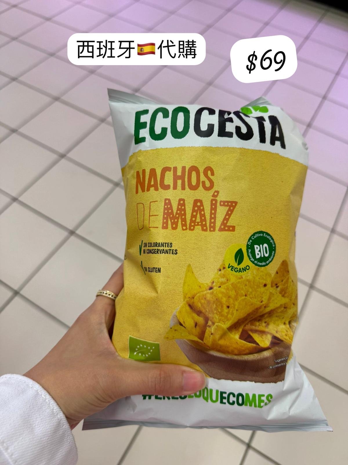 🌽 ECOCESTA Nachos de Maíz(玉米脆片) 這是一款來自西班牙的有機玉米脆片。 • 品牌:ECOCESTA • 特點: • 無人工色素與防腐劑(Sin colorantes ni conservantes) • 不含麩質(Sin gluten) • 純素(Vegano) • 採用有機農業原料(BIO) • 風味:天然玉米香酥脆,可搭配莎莎醬、酪梨醬等。 • 推薦食用場合:作為零食或派對點心。