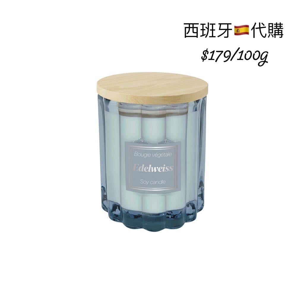 香氛大豆蠟燭(Bougie végétale Soy Candle) 外型為彩色玻璃瓶+木蓋設計,容量通常為大豆蠟香氛蠟燭,屬典雅法式風格。 🤍 Edelweiss – 雪絨花 香味類型:清新花香、溫柔純淨 • 淡雅溫和的白花香 • 乾淨、柔軟、帶點甜味 • 屬於空間提亮感的“輕盈香氣”