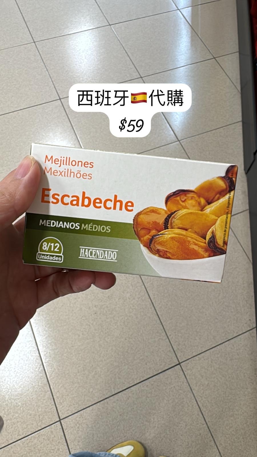 🦪 Hacendado 酸香醬汁淡菜罐頭(Mejillones en Escabeche) 🇪🇸 西班牙傳統風味 · 開胃海味小食 享受地中海海岸的經典滋味! Hacendado Mejillones en Escabeche 採用新鮮中型淡菜(8–12顆/盒), 以西班牙傳統「Escabeche」酸香醬汁浸製, 融合橄欖油、紅椒粉與香料的香氣,酸中帶鹹、微辣開胃, 是西班牙家庭最常見的開胃菜(Tapas)之一。 ⸻ 🍴 產品特色 • 嚴選中型淡菜(Medianos): 肉質厚實鮮甜,保留海洋原味。 • 西班牙經典 Escabeche 醬汁: 以橄欖油、醋、紅椒粉、月桂葉與香料慢煮調製, 味道酸香爽口,提升淡菜風味。 • 即開即食設計: 開罐即可享用,冷盤、開胃菜或搭配沙拉皆宜。 • 富含蛋白質與礦物質: 含鋅、鐵、維生素B12,是高營養海鮮選擇。 ⸻ 🍽️ 建議食用方式 1. 冷食開胃: 開罐後直接享用或搭配檸檬汁。 2. 熱食搭配: 可加入義大利麵、沙拉或西班牙Tapas拼盤中。 3. 下酒推薦: 特別適合搭配白酒、啤酒或氣泡酒。 ⸻ 📦 產品資訊 • 品牌: Hacendado(Mercadona 自有品牌) • 名稱: Mejillones en Escabeche(酸香醬汁淡菜) • 內容量: 約 8–12 顆(中型貝) • 成分: 淡菜、橄欖油、醋、紅椒粉、月桂葉、鹽 • 產地: 西班牙