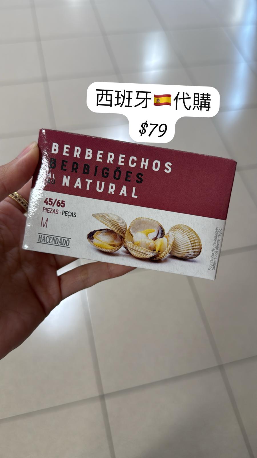 🐚 Hacendado 天然風味鳥蛤罐頭 M號(Berberechos al Natural · 45–65顆) 🇪🇸 大西洋海域珍味 · 西班牙經典開胃海鮮 Berberechos(中文常譯「鳥蛤」、「小蛤蜊」)是西班牙海岸常見的高級貝類。 這款 Hacendado Berberechos al Natural 精選加利西亞(Galicia)海域出產的鳥蛤, 以最天然的方式保鮮——僅以鹽水封存,呈現純粹的海洋鮮味。 ⸻ 🍴 產品特色 • 天然保存(Al Natural): 不含油、不添加香料或人工防腐劑,保持貝類原始風味與海鹽香氣。 • 中型貝粒(M號 · 45–65顆): 每罐約含45–65顆,大小均勻、肉質厚實、口感彈牙。 • 高蛋白低脂肪: 富含鐵、鋅、碘與維生素B12,是健康海鮮食材的極佳來源。 • 即開即食: 開罐即可享用,冷食、入菜或搭配Tapas都非常適合。 ⸻ 🍽️ 建議食用方式 1. 西班牙Tapas開胃菜: 冰鎮後直接享用,搭配白酒、氣泡酒或檸檬汁。 2. 地中海沙拉: 混合番茄、洋蔥、橄欖與橄欖油製成冷盤沙拉。 3. 主食搭配: 加入海鮮義大利麵或燉飯中,增添自然鮮味。 ⸻ 📦 產品資訊 • 品牌: Hacendado(Mercadona 自有品牌) • 名稱: Berberechos al Natural • 中文名稱: 天然風味鳥蛤罐頭 • 規格: 中顆(M號),每罐約45–65顆 • 主要成分: 鳥蛤(Berberechos)、鹽水 • 保存方式: 常溫保存,開封後冷藏並儘快食用 • 產地: 西班牙(Galicia 加利西亞)