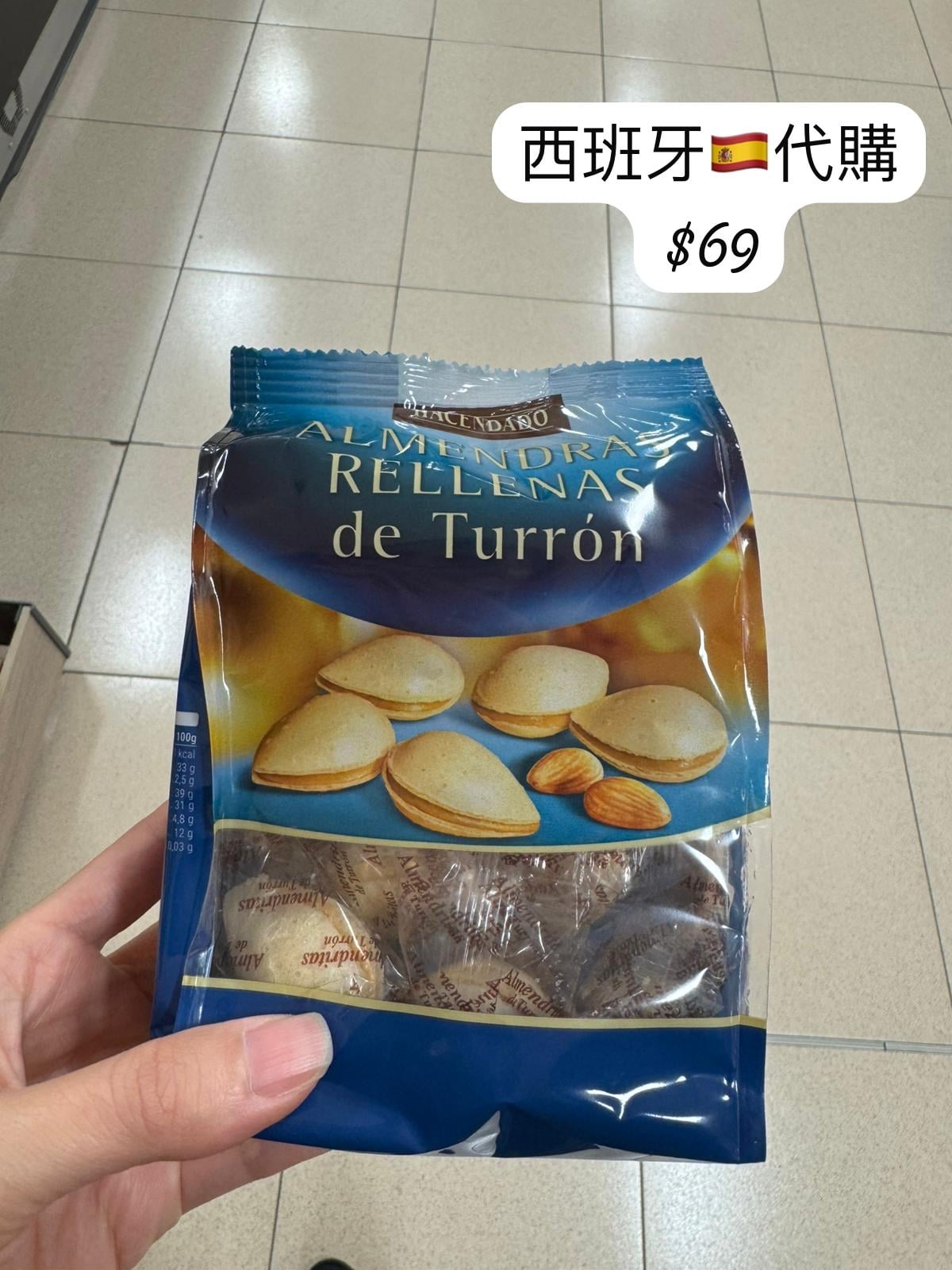 🌰🍬 Hacendado 杏仁夾心牛軋糖(Almendras Rellenas de Turrón) 產品名稱: Hacendado 杏仁內餡牛軋糖 規格: 每袋多顆獨立包裝 特色: • 西班牙經典聖誕甜點 Turrón(牛軋糖) 的變化版 • 外層為酥脆杏仁殼(類似法式可麗餅餅殼) • 內餡填入香甜牛軋糖,口感酥脆 + 軟嫩雙重享受 • 方便分享、配茶、咖啡非常合適 • Hacendado 為西班牙超市 Mercadona 自家品牌,品質穩定、性價比高