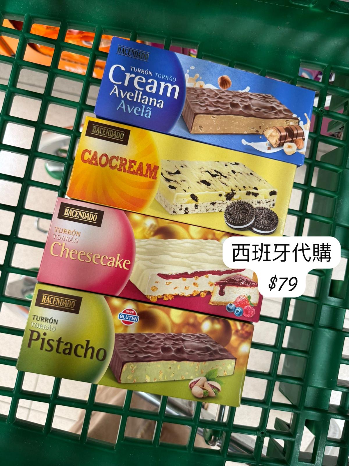 🔴 🍫 1️⃣ Hacendado 西班牙手工牛軋糖系列(Turrón) 這些是西班牙超市 Mercadona 自家品牌 Hacendado 出品的聖誕限定甜點 —— Turrón(西班牙傳統牛軋糖/果仁糖),每款口味都有不同特色。 🟦 Cream Avellana(榛子奶油脆層牛軋糖) • 內層為香滑榛子奶油夾心,外層包裹香濃牛奶朱古力。 • 口感酥脆、香甜濃郁。 • 含豐富榛子碎,口感層次分明。 🟨 CaoCream(可可奶油夾心牛軋糖) • 白朱古力基底搭配可可餅乾碎(類似 Oreo)。 • 香甜濃郁,帶有脆脆的餅乾口感。 • 特別受年輕人和小朋友歡迎。 🟥 Cheesecake(芝士蛋糕風味牛軋糖) • 白朱古力搭配芝士蛋糕風味餡與莓果醬夾心。 • 酸甜平衡,帶有輕盈奶香與莓果香氣。 🟩 Pistacho(開心果朱古力牛軋糖) • 綠色牛軋糖混合開心果碎,外層裹上黑朱古力。 • 味道香濃而不膩,並標示 無麩質(Sin Gluten)。 • 適合搭配咖啡或紅酒享用。