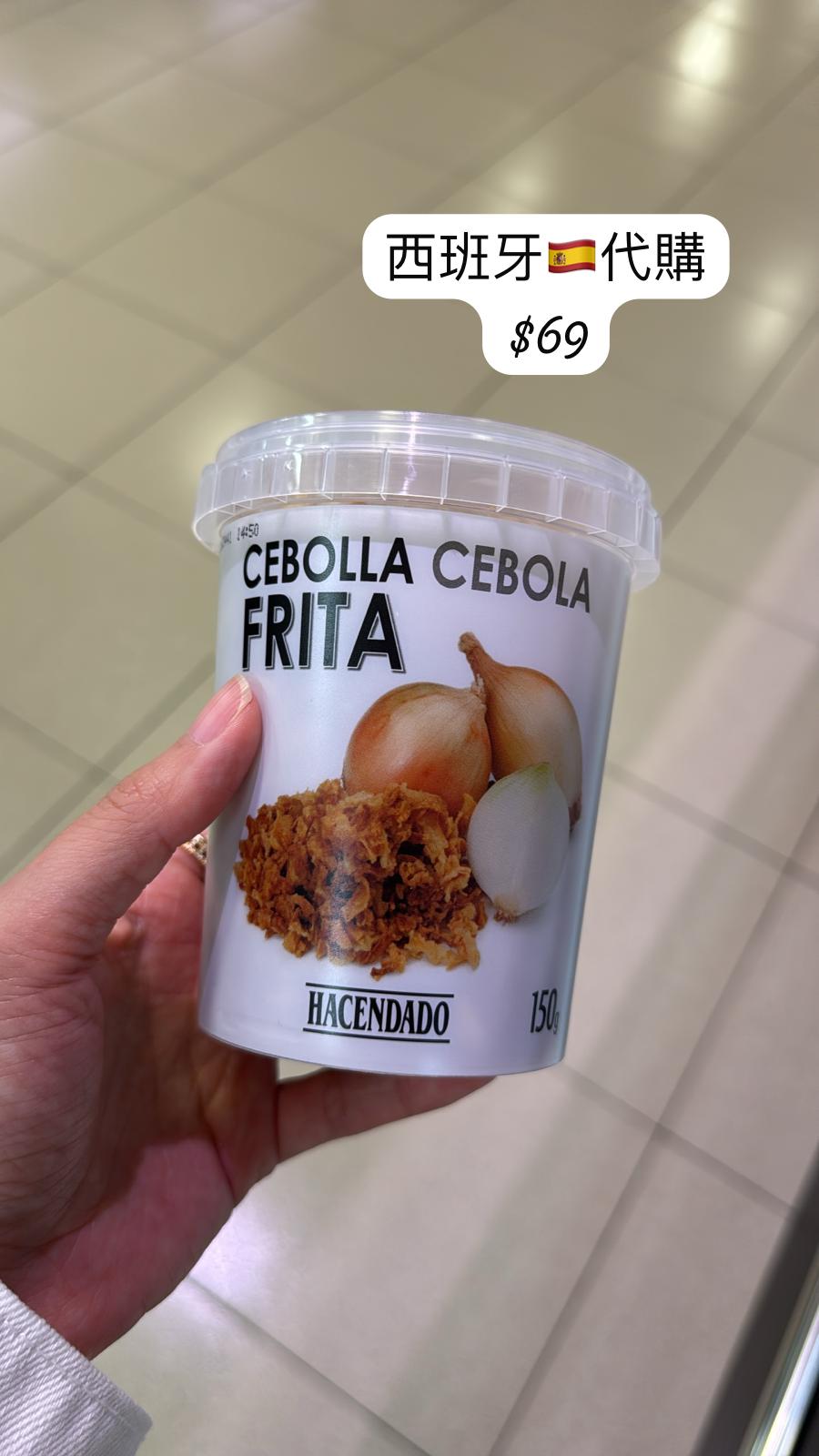 🧅 Hacendado Cebolla Frita(炸洋蔥碎) 🍽️ 香脆可口的多用途料理配料 ⸻ 💎 產品介紹 「Cebolla Frita」是經典的 炸洋蔥碎, 以新鮮洋蔥切片後油炸至金黃酥脆製成, 可直接食用或作為料理配料。 ⸻ 🌿 產品特色 • 100% 天然洋蔥製成,無防腐劑。 • 外酥內香,增添料理層次與口感。 • 可作為即食配料,也可烹飪時加入。 • 廣泛應用於沙拉、熱狗、漢堡、湯品與燉飯。 ⸻ 📦 產品資訊 • 品牌: Hacendado • 品名: Cebolla Frita • 中文名稱: 炸洋蔥碎 • 淨重: 150g • 成分: 洋蔥、植物油、麵粉(含小麥)、鹽。 • 包裝: 透明塑膠罐,可重複封口保存。 ⸻ 🍽️ 使用建議 • 即食配料: 撒在沙拉、熱狗或漢堡上。 • 烹飪搭配: 可拌入炒飯、湯品或燉菜中。 • 裝飾用途: 為料理增添香氣與酥脆口感。