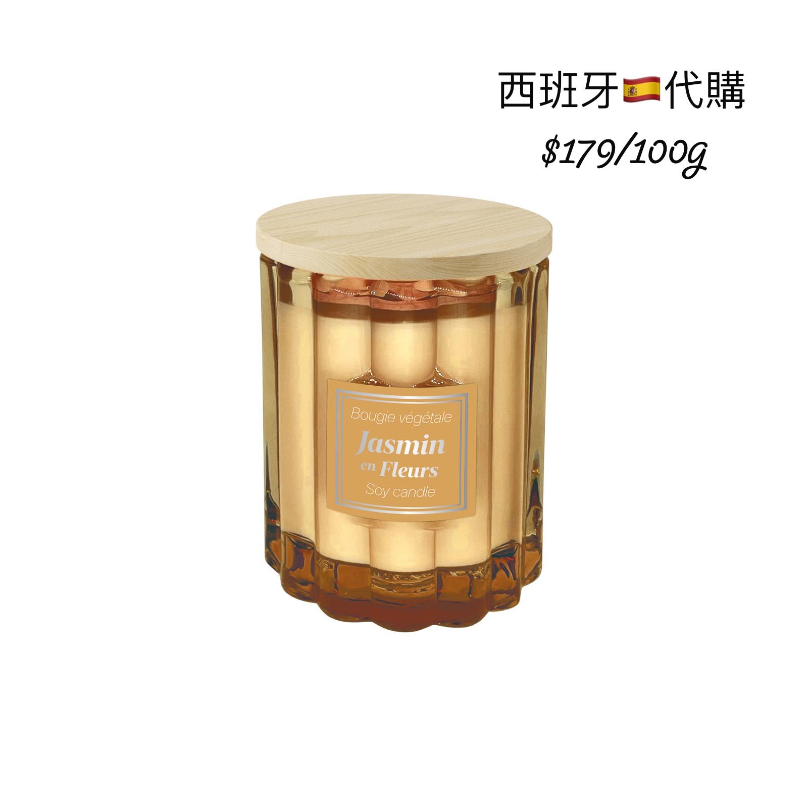 香氛大豆蠟燭(Bougie végétale Soy Candle) 外型為彩色玻璃瓶+木蓋設計,容量通常為大豆蠟香氛蠟燭,屬典雅法式風格。 🧡 Jasmin en Fleurs(花開茉莉) 香味特色: 清新優雅的茉莉花香,帶點幽香與柔甜的白花調。 中文介紹: 充滿女性魅力與潔淨氣息的茉莉花香,清雅不濃烈,適合臥室或閱讀時光。