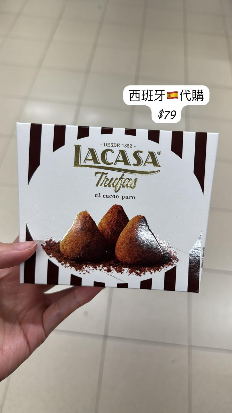 🔴 LaCasa 松露朱古力(Trufas al Cacao Puro) 🇪🇸 西班牙經典品牌 LaCasa(自1852年起)。 以純可可粉覆蓋的松露朱古力,口感濃郁香滑。 🌟 特點 • 外層可可粉微苦,內餡香滑柔順。 • 採用高品質可可豆製成,風味純正。 • 入口即化,香氣悠長。 ☕ 建議搭配: 紅酒、咖啡或茶,作為節日甜點非常合適。