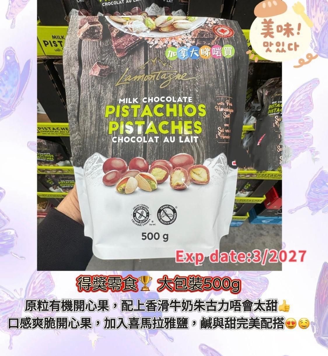 🔥🇨🇦 加拿大激推!瘋狂回購款零食! 🔥 🏆 Lamontagne Milk Chocolate Pistachios 📦 巨型家庭裝 500g! 🟡$158 1月中左右到 ✨ Exp: 03/2027|超長保質期,入貨唔怕放! ✨ 粒粒原粒開心果 ➕ 香濃牛奶朱古力 ➕ 喜馬拉雅鹽 🤩 鹹甜零食界完美組合!一開袋即刻停唔到口! 👍喜馬拉雅鹽牛奶開心果朱古力,完美結合 👍品牌連續第3次攞獎 🏆27th Canadian Grand Prix New Product AwardTM 👍不含麩質️ 👉 追劇、開派對、做手信全部啱晒! 👉 加拿大Local大熱款,門市好快就賣斷~
