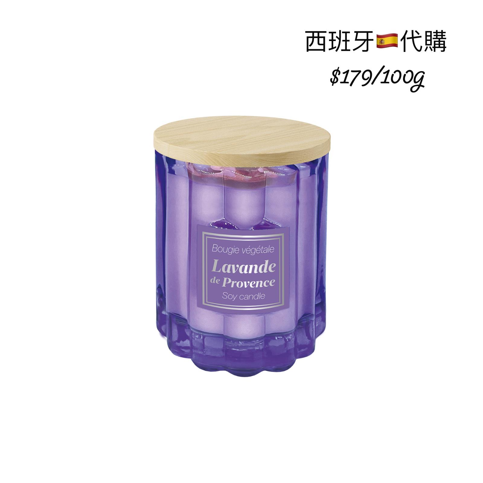 香氛大豆蠟燭(Bougie végétale Soy Candle) 外型為彩色玻璃瓶+木蓋設計,容量通常為大豆蠟香氛蠟燭,屬典雅法式風格。 💜 Lavande de Provence – 普羅旺斯薰衣草 香味類型:花香、舒緩系 • 經典法式薰衣草香氣 • 具有安撫心情、放鬆神經的效果 • 適合睡前、瑜伽、想營造靜謐空間時使用