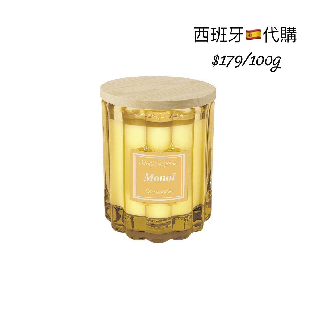 香氛大豆蠟燭(Bougie végétale Soy Candle) 外型為彩色玻璃瓶+木蓋設計,容量通常為大豆蠟香氛蠟燭,屬典雅法式風格。 💛 Monoï(莫諾伊 / 大溪地花香油) 香味特色: 具南國度假風的椰子+提亞蕾花香(大溪地雞蛋花),甜香浪漫。 中文介紹: 像是在南太平洋度假般,熱帶花香與椰奶感交融,溫柔、甜美、慵懶。