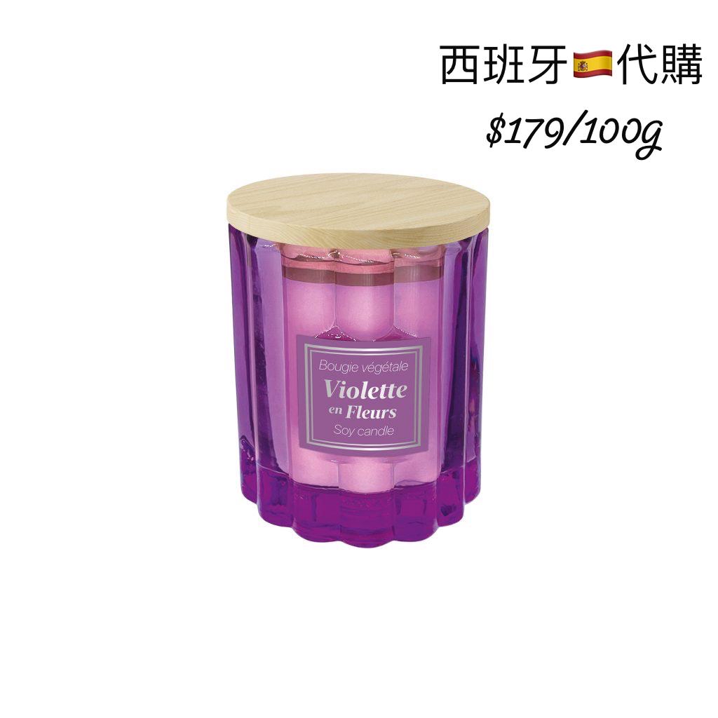 香氛大豆蠟燭(Bougie végétale Soy Candle) 外型為彩色玻璃瓶+木蓋設計,容量通常為大豆蠟香氛蠟燭,屬典雅法式風格。 💜 Violette en Fleurs(紫羅蘭花) 香味特色: 柔甜花香+微粉感,清新又浪漫。 中文介紹: 紫羅蘭的淡雅花香中帶點粉香,溫柔、細膩,非常適合打造柔美清新的空間。