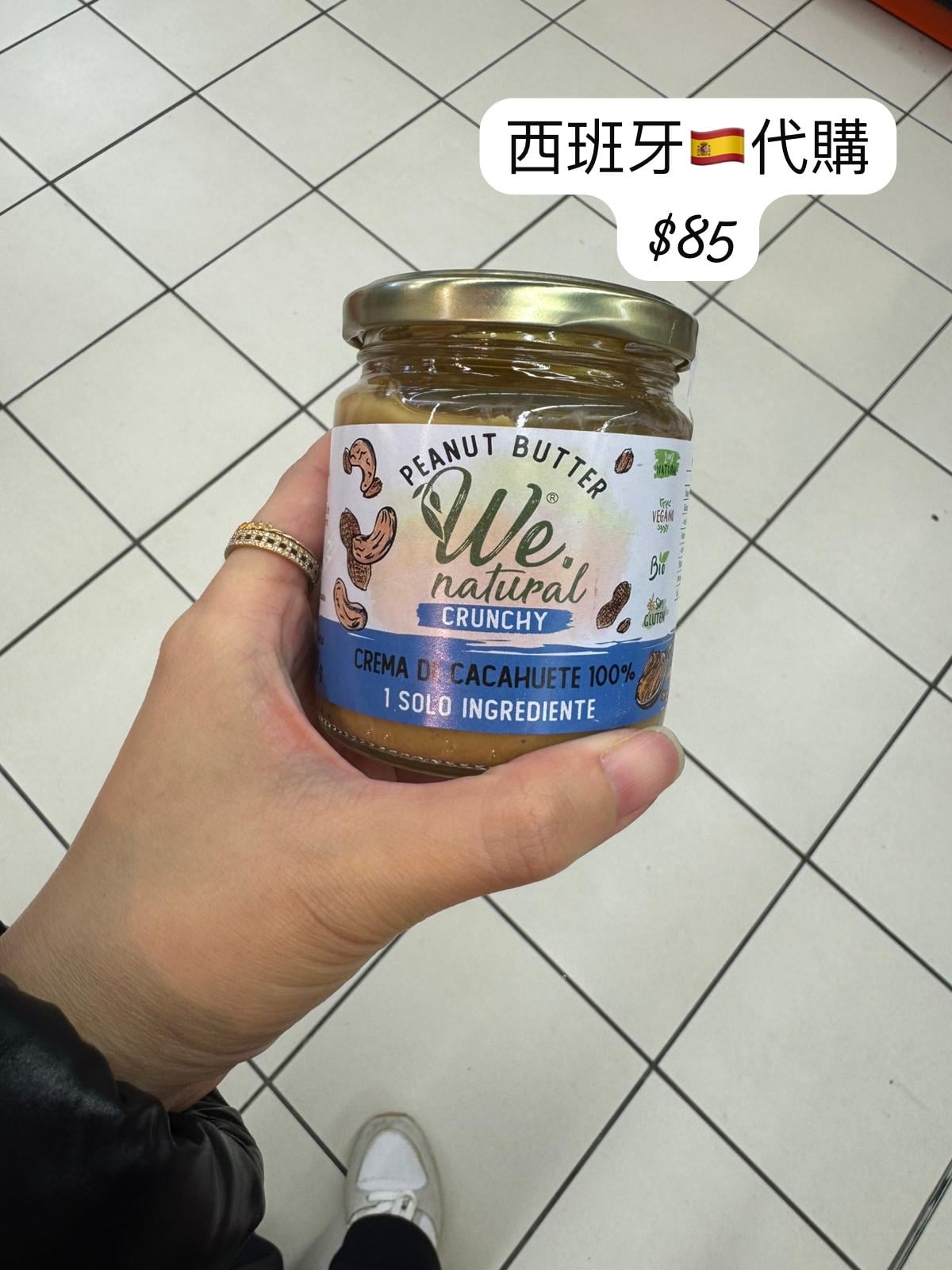 We Natural — 100% Peanut Butter Crunchy(100% 花生顆粒醬) 📌 特點 • 100% 單一成分:花生 • 「Crunchy」= 顆粒口感。 • 無糖、無鹽、無添加油。 • 純素(VEGAN) • 不含麩質(GLUTEN FREE) 📌 適合健身、減糖、吃原型食物的人。